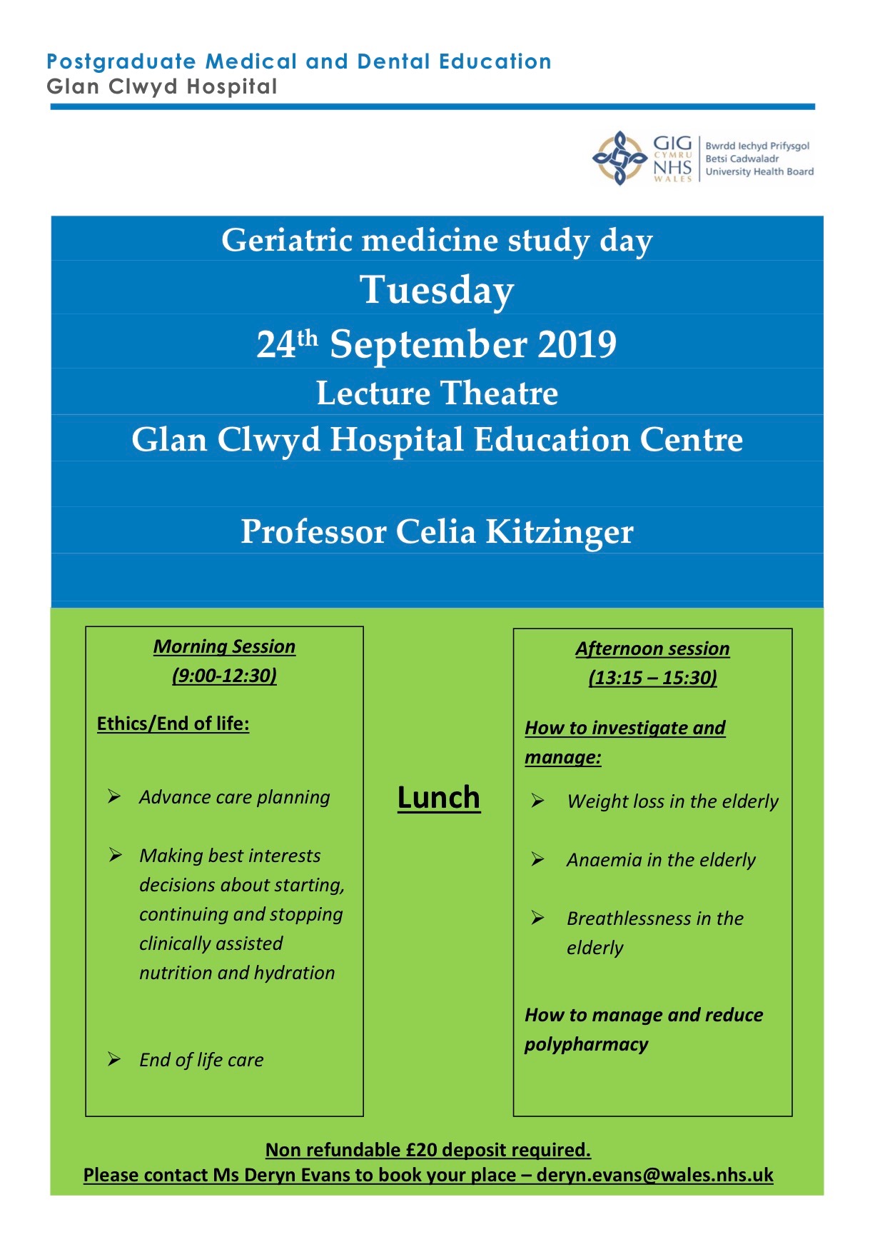 - ADA EVENTS 2019- 3 September: Derick Wade and Celia Kitzinger will be speaking jointly about advance decisions and best interests at the National Conference of the Court of Protection Practioners’ Association Leeds. 24 September: Celia Kitzinger will be running a session on the CANH Guidelines at a Study Day at Glan Clwyd Hospital in Bodelwyddan, Denbighshire, Wale (organised by the Betsi Cadwaladr University Health Board). The day will involve about 70 staff members including GPs, hospital doctors, nurses, and care homes staff. Please contact Ms Deryn Evans to book your place – [email protected]- 2 October: We’ll contribute the the study day for Parenteral and Enteral Nutrition Group [PENG] (a specialist group of the British Dietetic Association). Celia Kitzinger will be talking about the new CANH guidance, and more generally about the decision making that should take place with regards patients lacking mental capacity, including the role of advance decisions and lasting power of attorney (The Studio in Birmingham; attendees approximately 120 dietitians) 10 October: Person centred working in Dementia Care: All Wales Forum. We’ll be talking to clinical psychologists about advance care planning for people with dementia, covering advance decisions, advance statements and power of attorney. Aberystwyth University. https://www.pcwdc.rhiwen.com* event open to all (contact us for details if interested in attending)